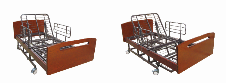 規格:2080*1080*4501.實木床頭、尾板、圍板,表面環保油漆,顏色可與房間環境相匹配;2.床面使用鋼網結構,具有透氣、防潮濕的特點;3.背部起折角度0-805,腿部上曲0-455,腿部下曲0-705;4.日式插入式護欄,可輔助人站立;5.可選配日式轉彎護欄、餐板、輸液架。
